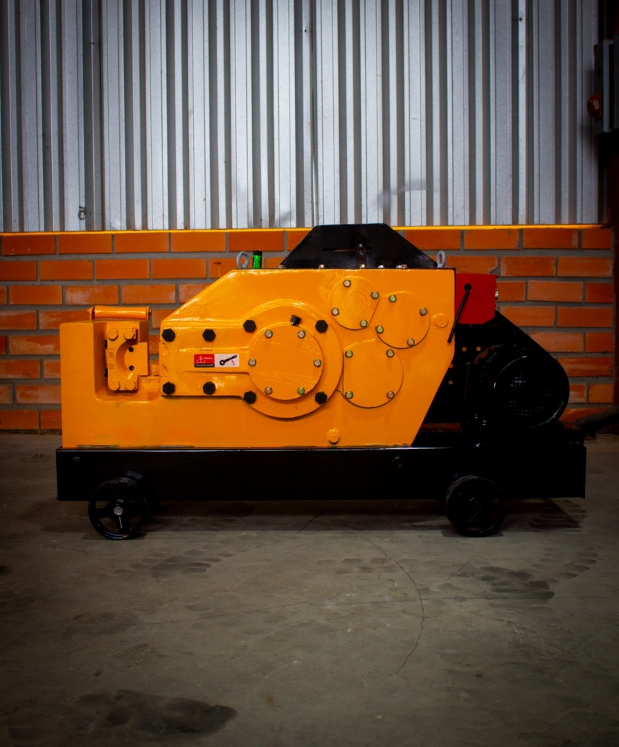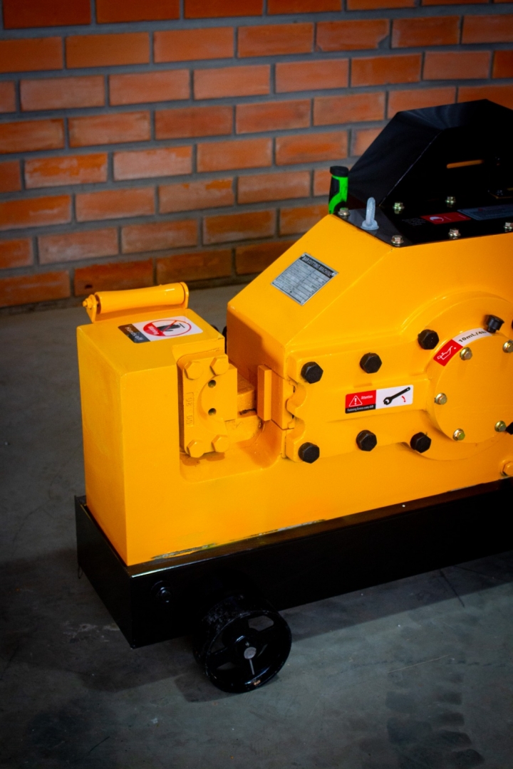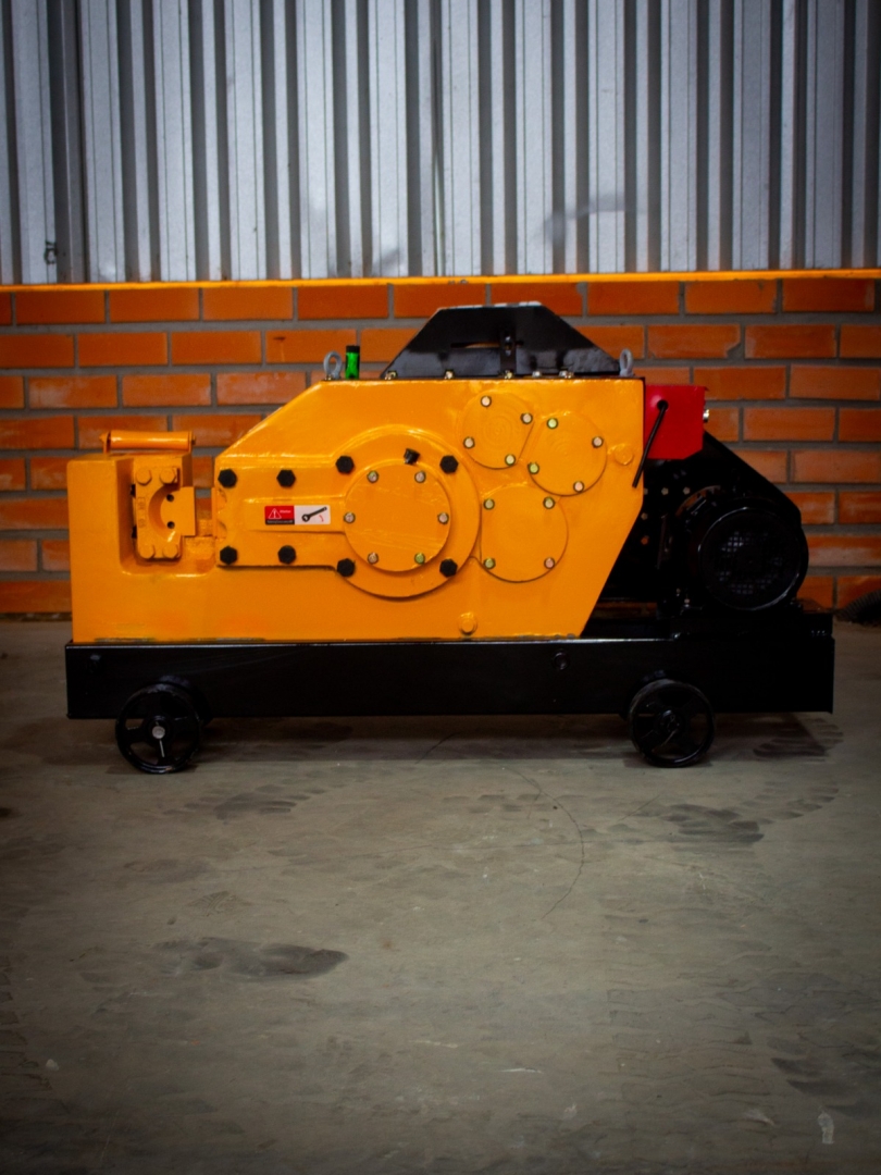 Esta é a máquina de corte de vergalhões GQ50A, projetada para cortar vergalhões redondos e deformados com eficiência e precisão. É uma ferramenta robusta e potente, ideal para canteiros de obras e indústrias que exigem alta performance no corte de aço.